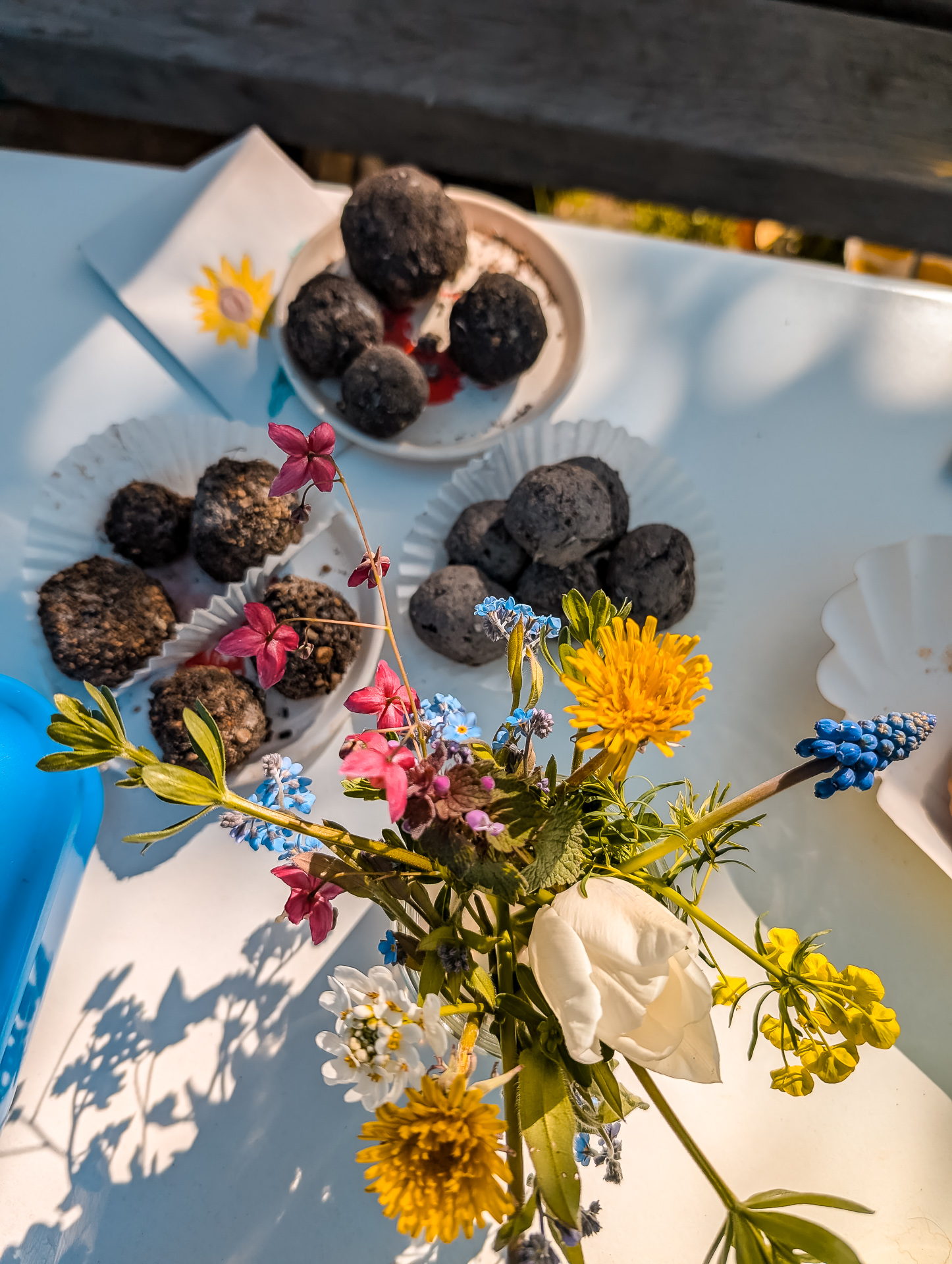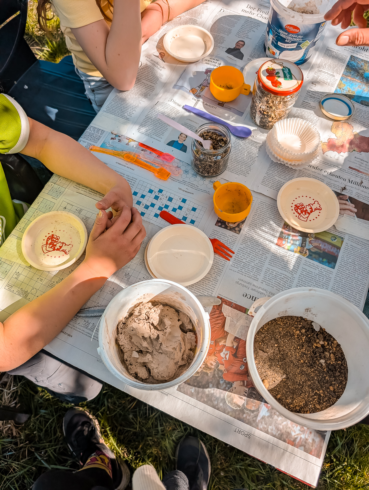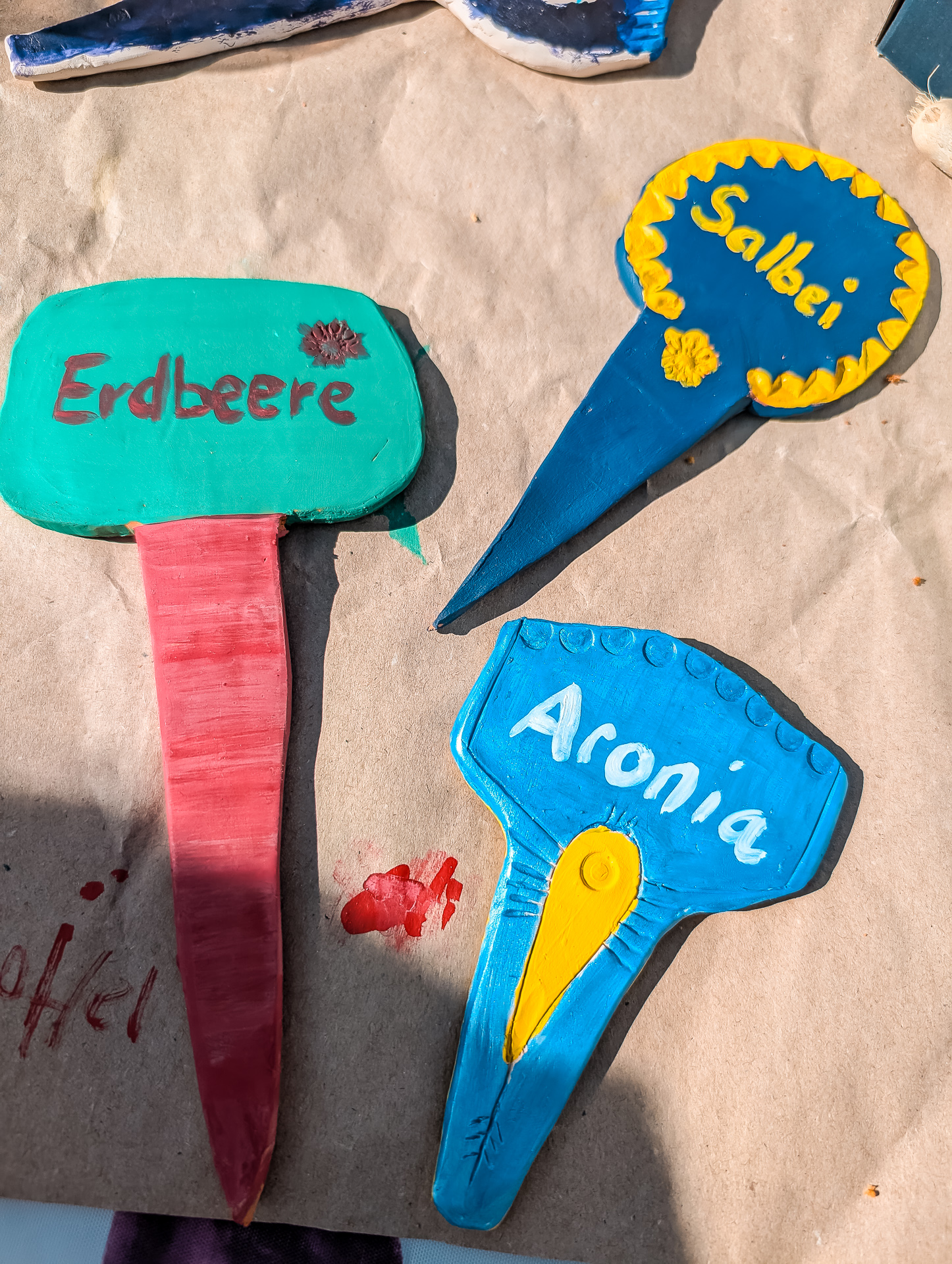 Heute fand eine Gartenaktion für Kinder statt. Es wurden Saatbomben gebaut, Pflanzenstecker getöpfert und bemalt sowie Samentücher gebastelt und mit Wildkräutern befüllt. Außerdem gab es lecker Kuchen! Bei diesem schönen Wetter hat es doppelt Spaß gemacht.